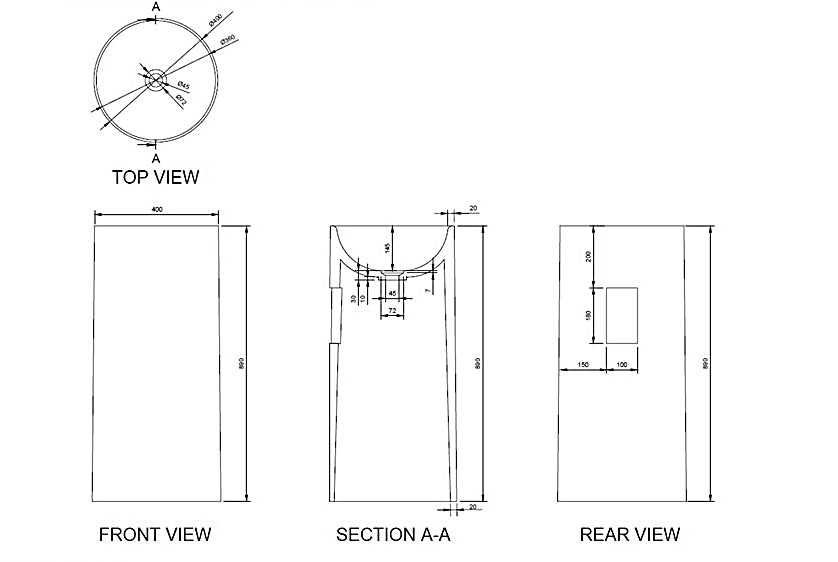 Dimension: 400D x 890H mm (Tolerance -/+ 3mm)